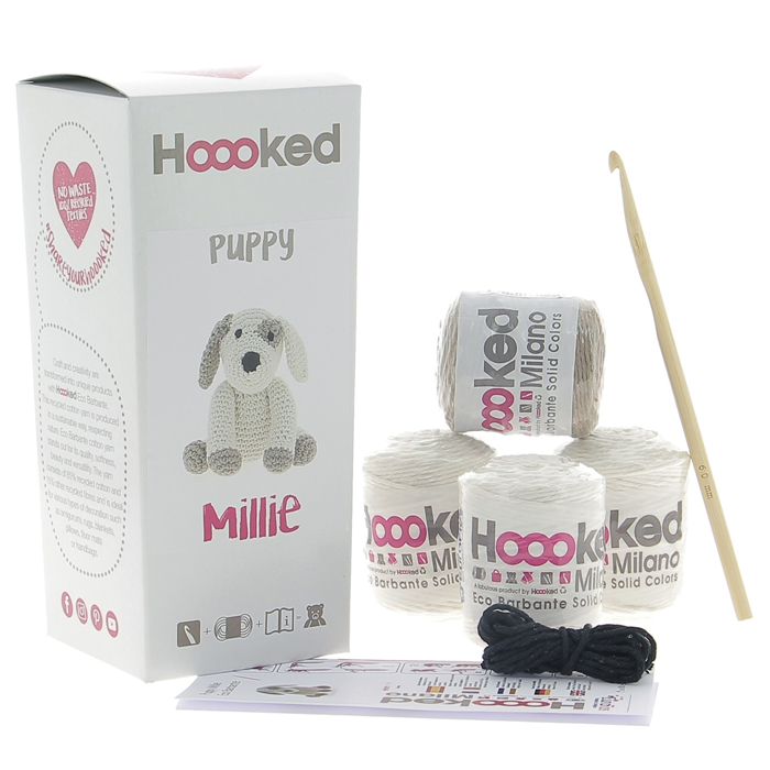 Cet adorable kit chien fera le bonheur des enfants ! Cet amigurumi est à crocheter avec du fil Hoooked 85% coton et 15% de fil recyclé coton Eco Barbante. Un cadeau rigolo et fait main, qui sera certainement apprécié par vos proches. Le kit chien contient les fils, le crochet bambou n°6, les explications et un mètre de fil noir pour les yeux.