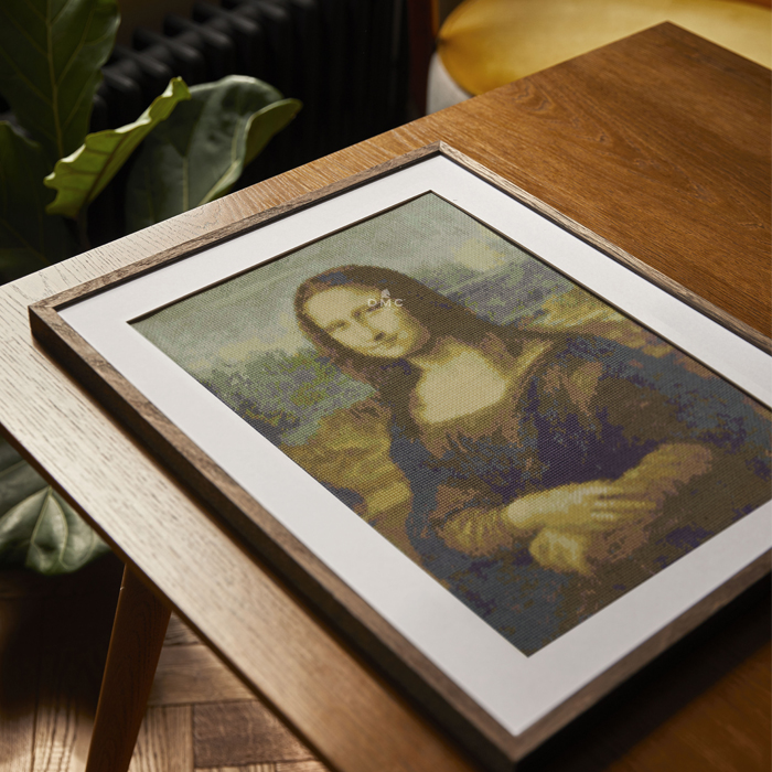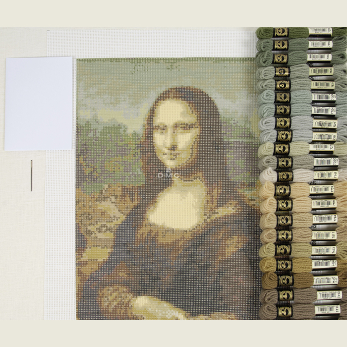 Kit à réaliser selon la technique du demi-point, représentant la Mona Lisa de Léonard de Vinci.